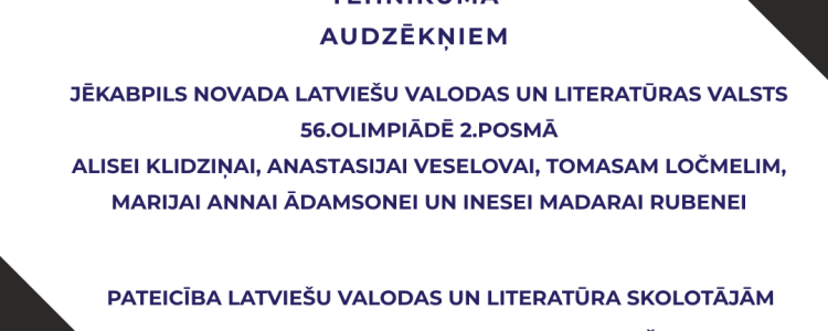 Jēkabpils novada latviešu valodas un literatūras valsts 56.olimpiādes 2.posms